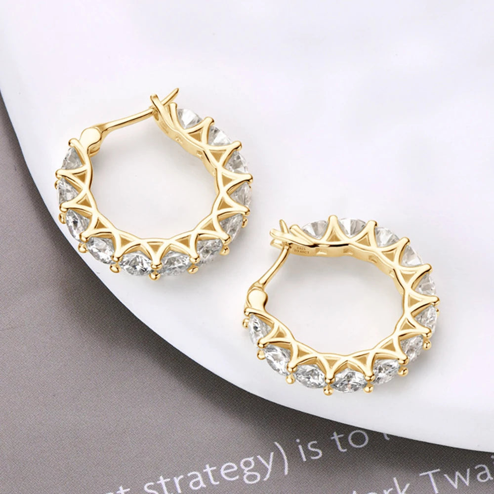 Windsor - Brincos de Argola - Moissanita 4mm / Ouro Amarelo