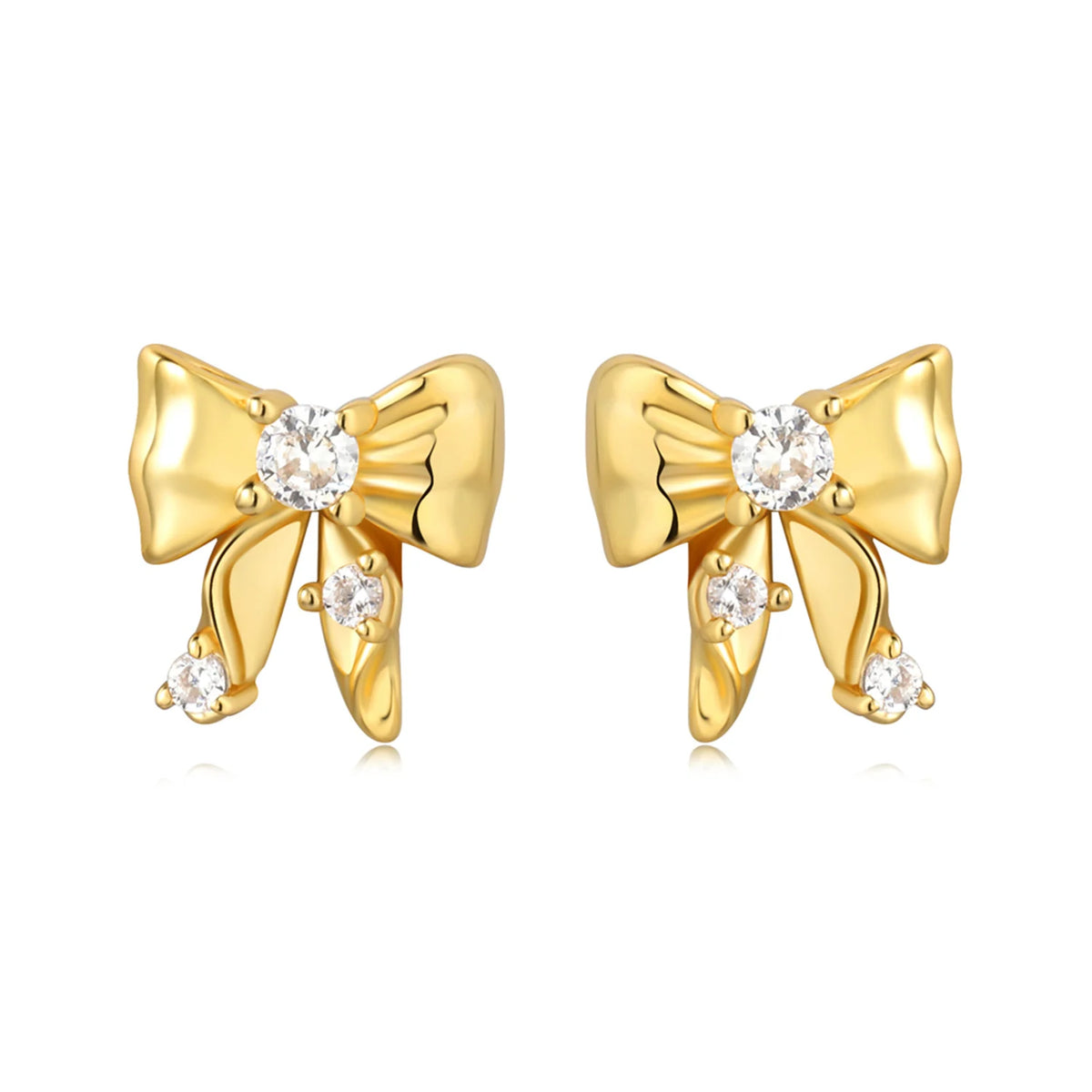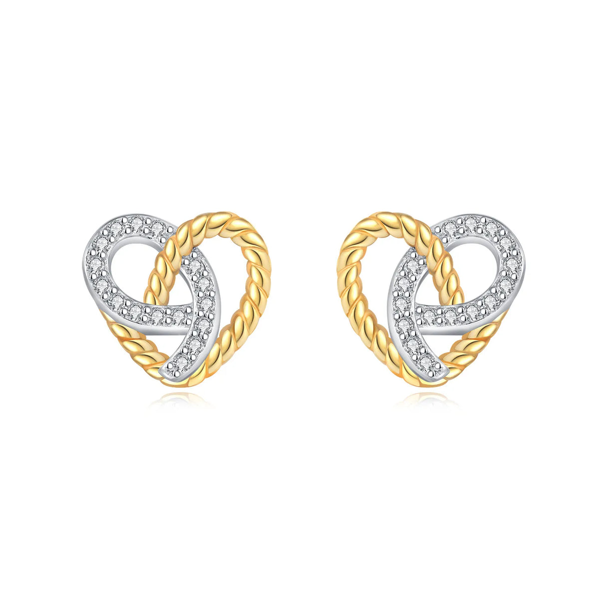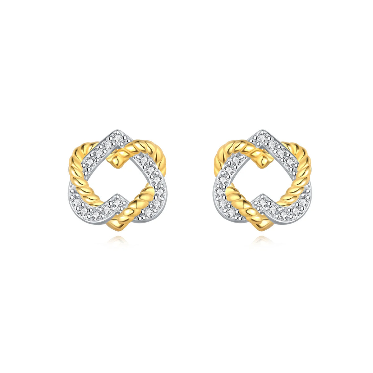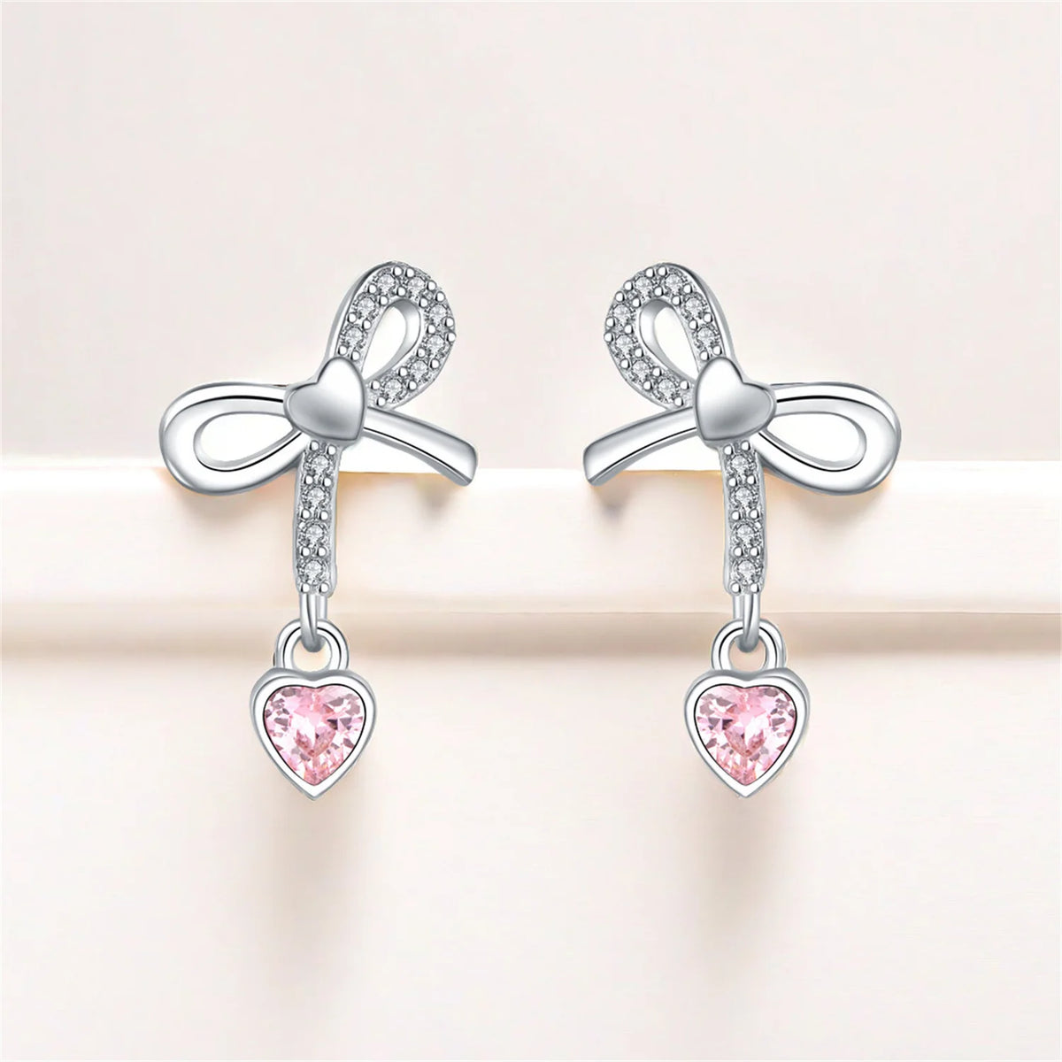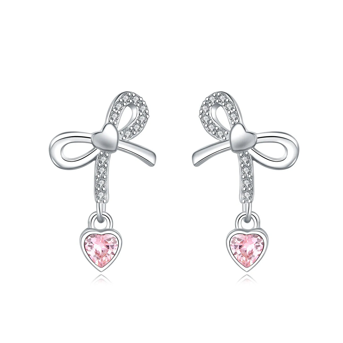 Joia de Luxo Prata 925 - Brincos Coração Rosa - Laço Dourado