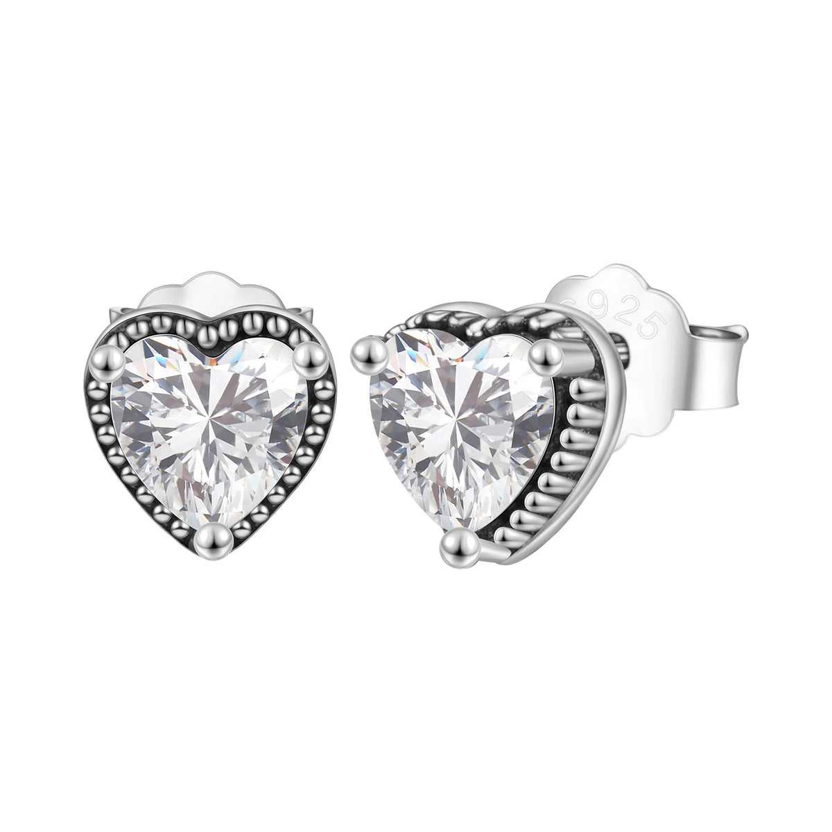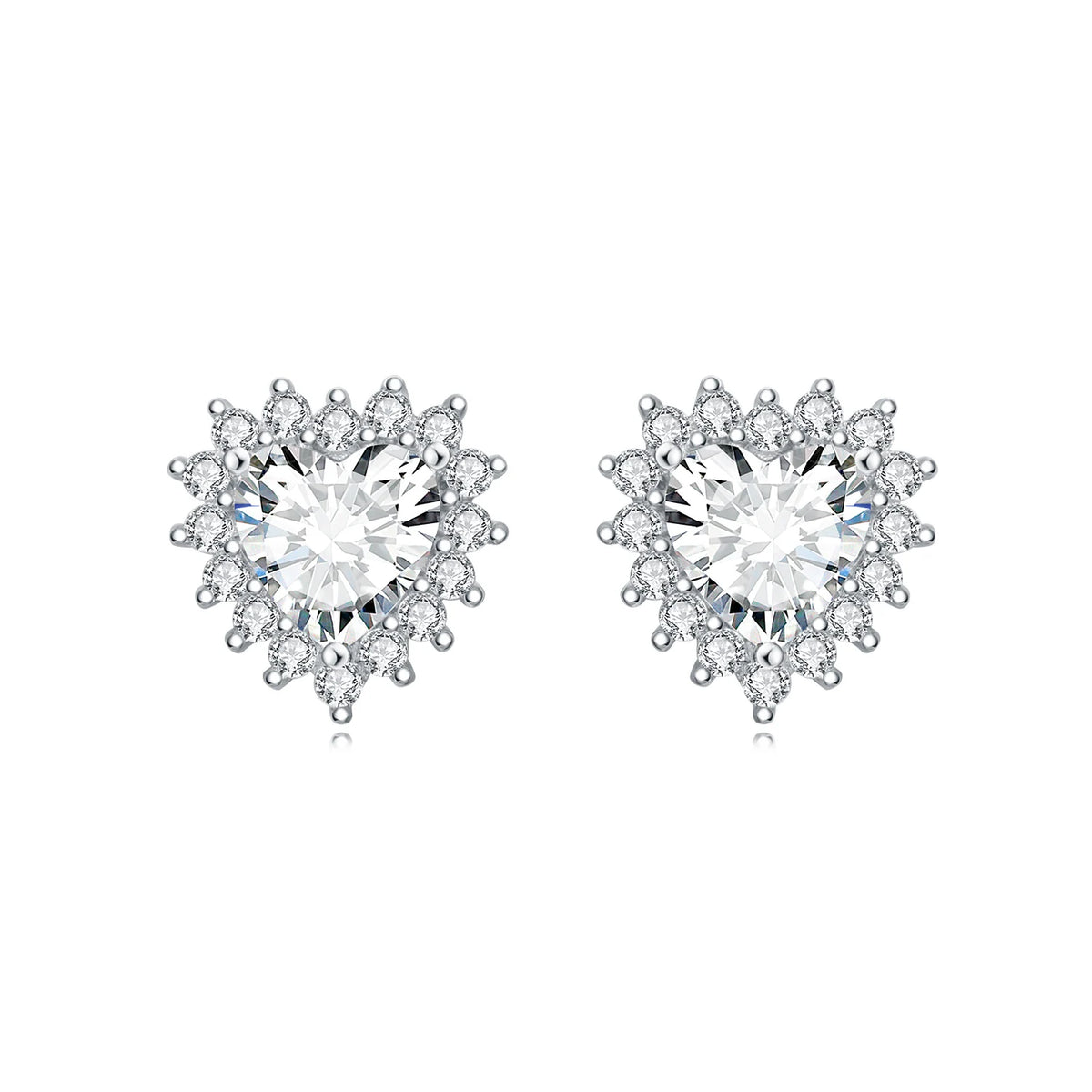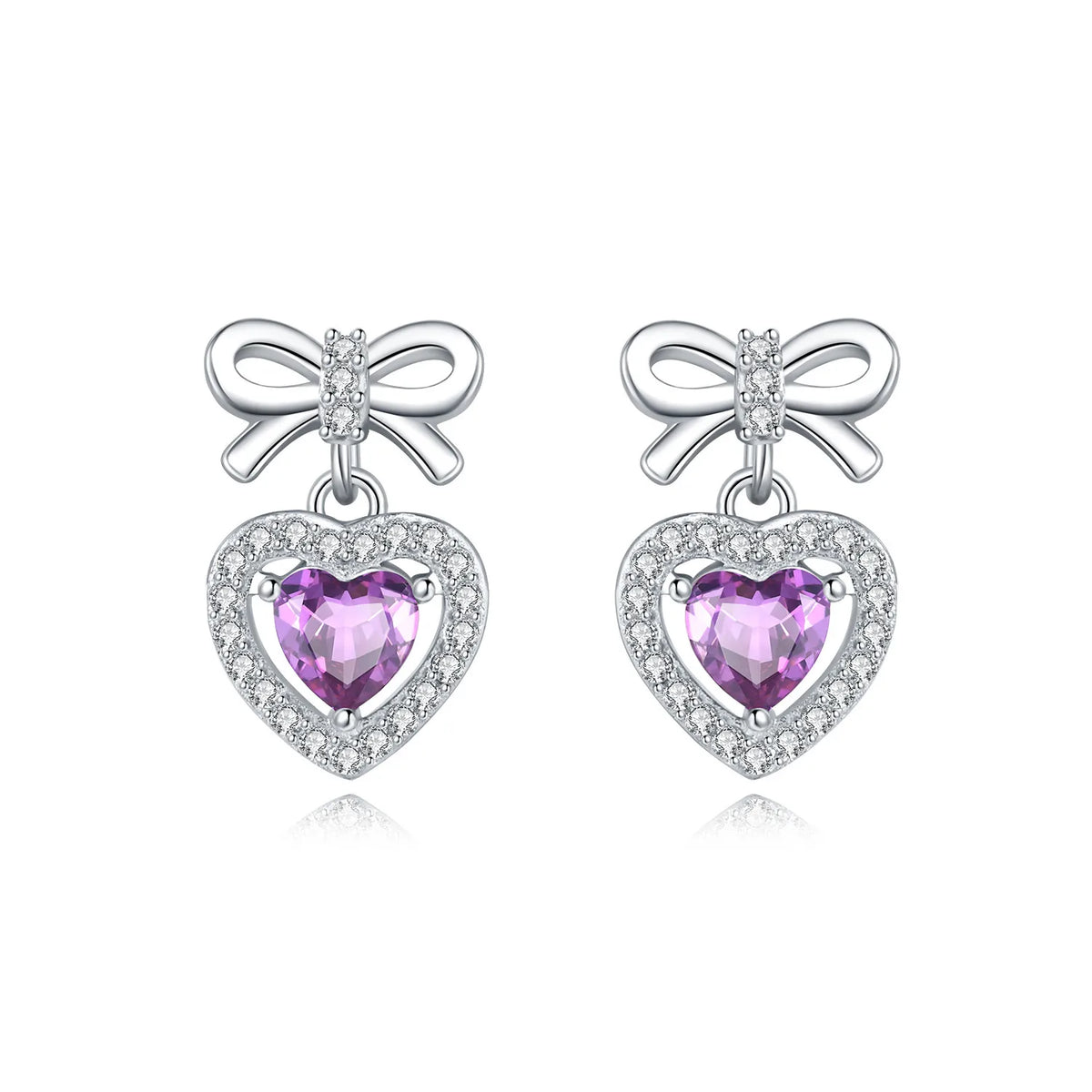 Joia de Luxo Prata 925 - Brincos Coração Rosa